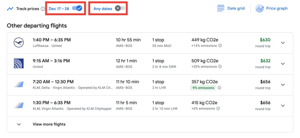 Search your route and dates. On the results page, toggle “Track prices.” On desktop it’s in the top-left above the results. On mobile, use the same “Track prices” toggle